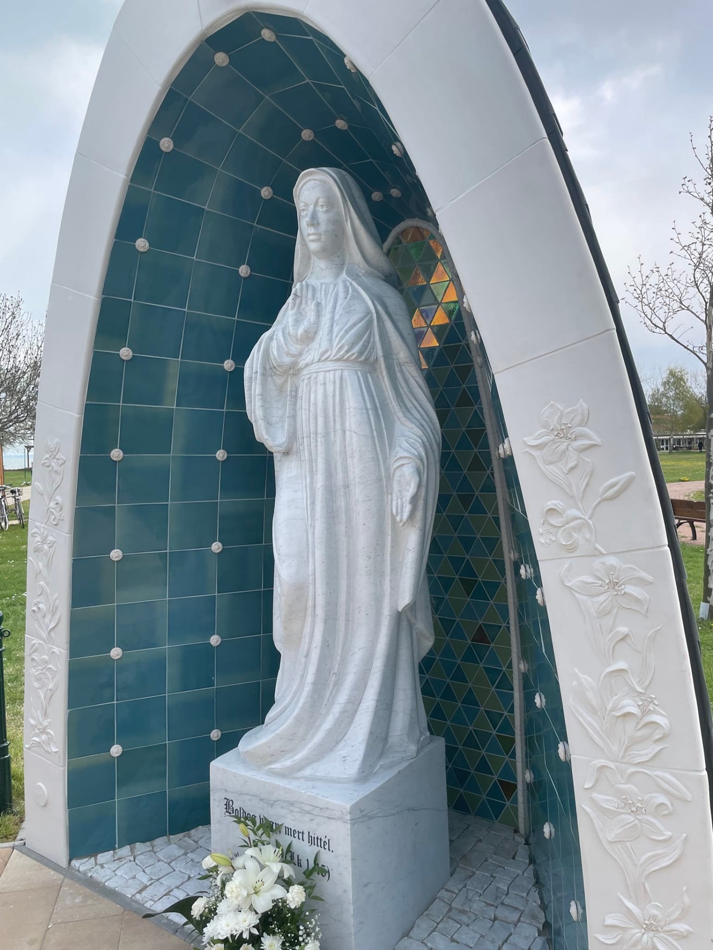 SEGÍTŐ MÁRIA. 2022, Zamárdi. Carrarai márvány, 300x70cm