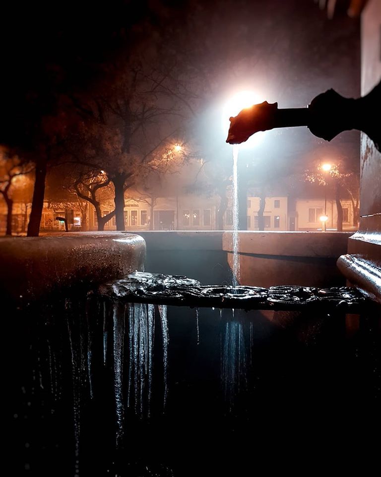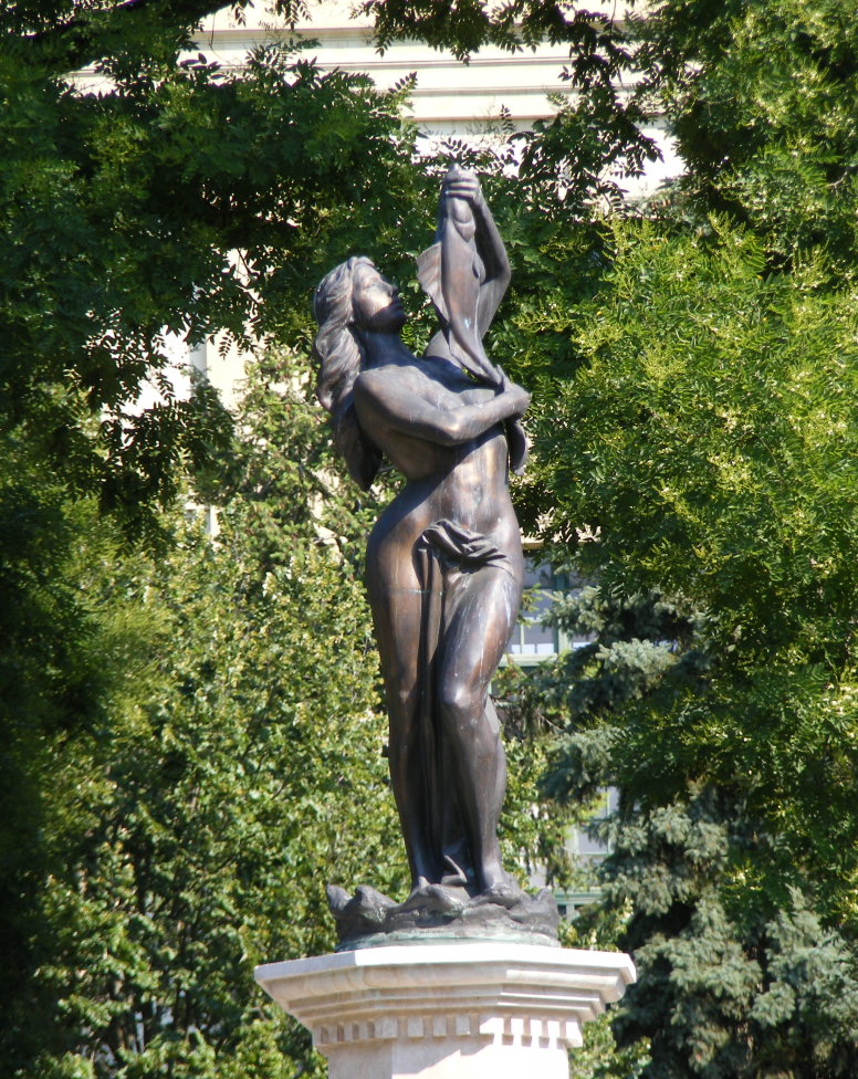 HALÁSZLÁNYOS KÚT. 2002, Békéscsaba. Bronz, mészkő.