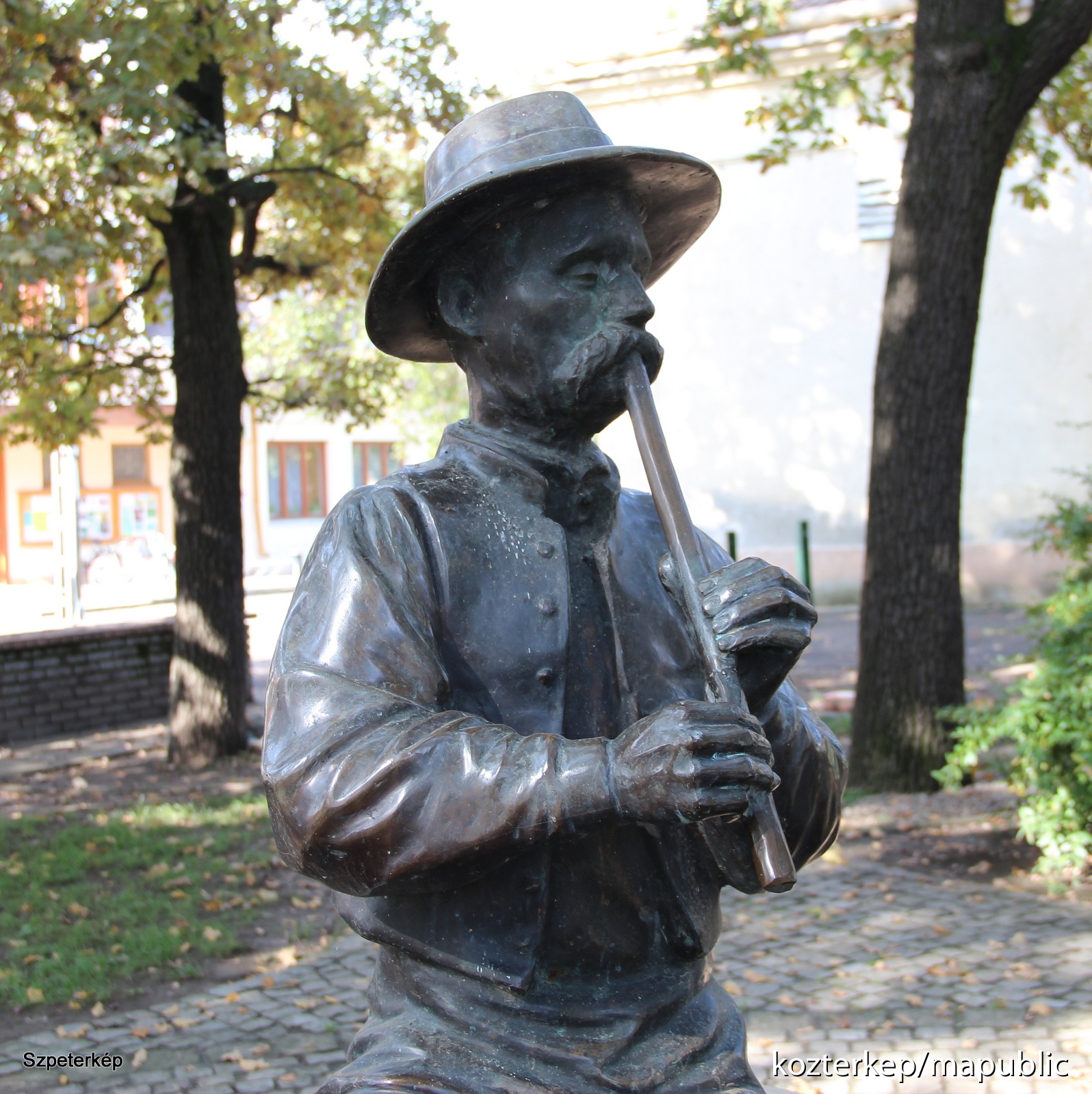 FURULYÁZÓ PÁSZTOR. 2000, Doboz. Bronz, mészkő.